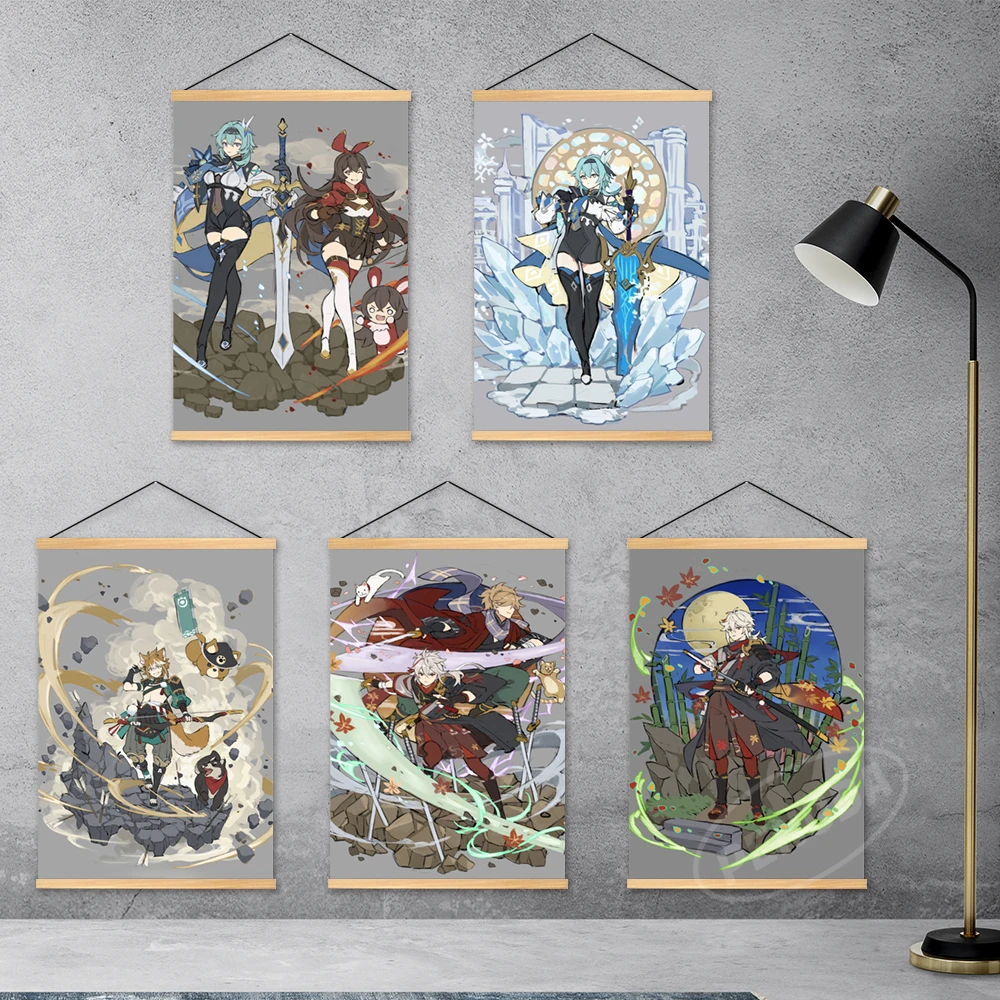 Wall Art Genshin Impact Amber Canvas Chongyun Pictures Eula Painting Printed Thoma Poster Xingqiu Hanging Wooden Home Decoration Aliexpress